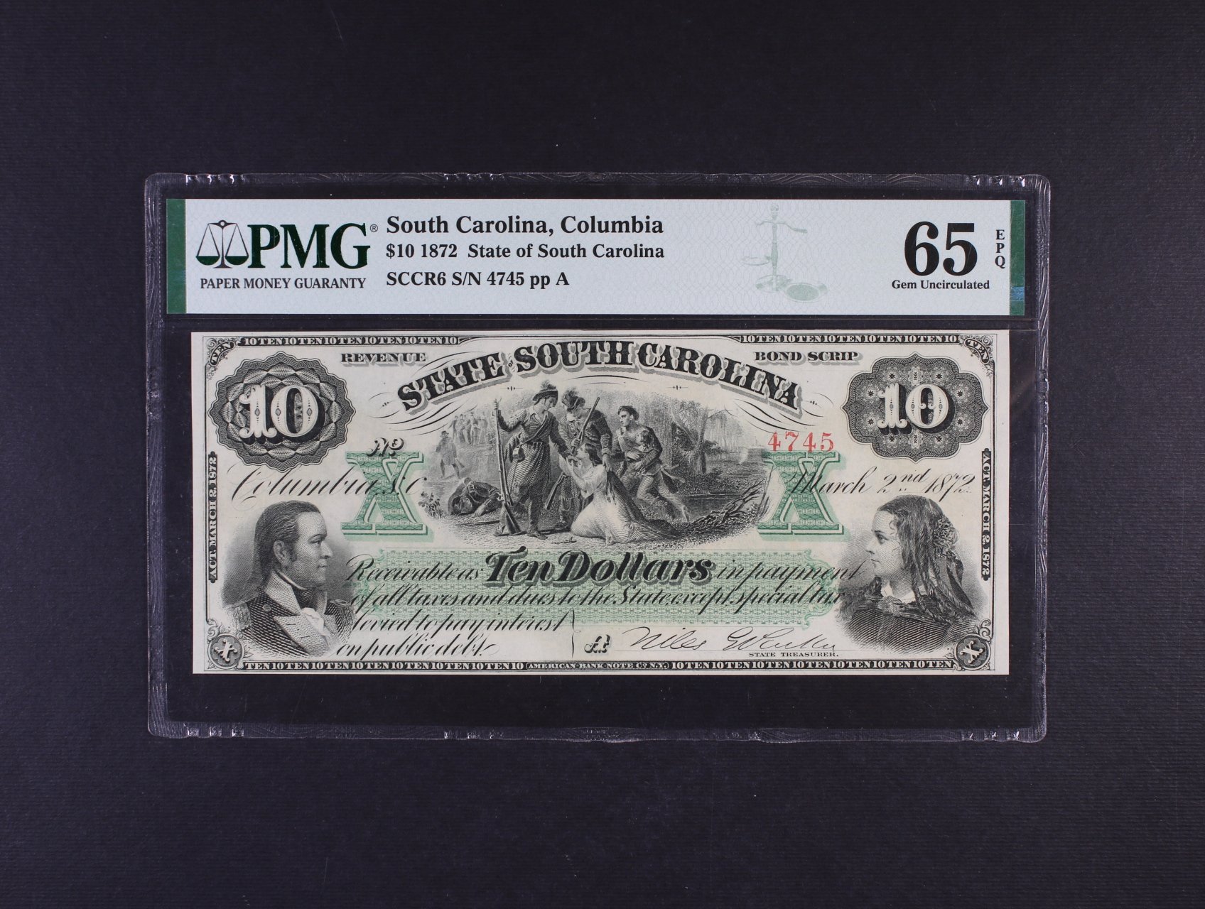 South Carolina, Columbia, 10 Dollars 1872, PMG 65
