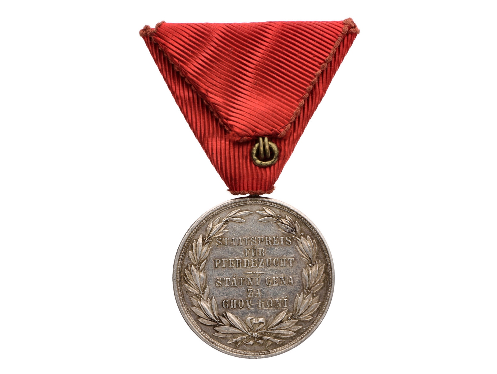 • Státní cena za chov koní, vydání 1890, neměcko český text, na hraně puncovní značka hlavního puncovního úřadu Vídeň A, původní stuha, M435k