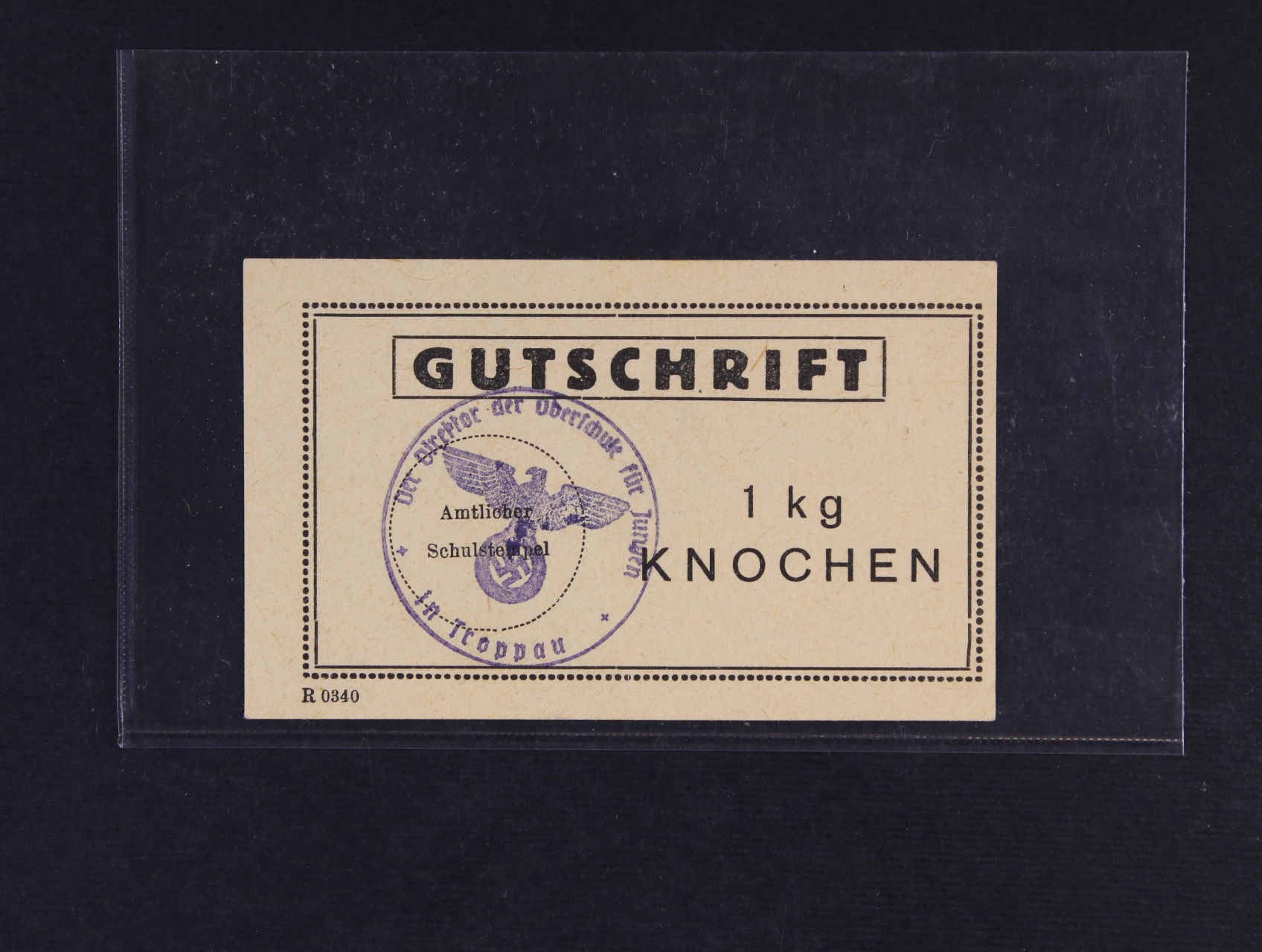 Troppau (Opava), poukázka na Kosti, školní raz.