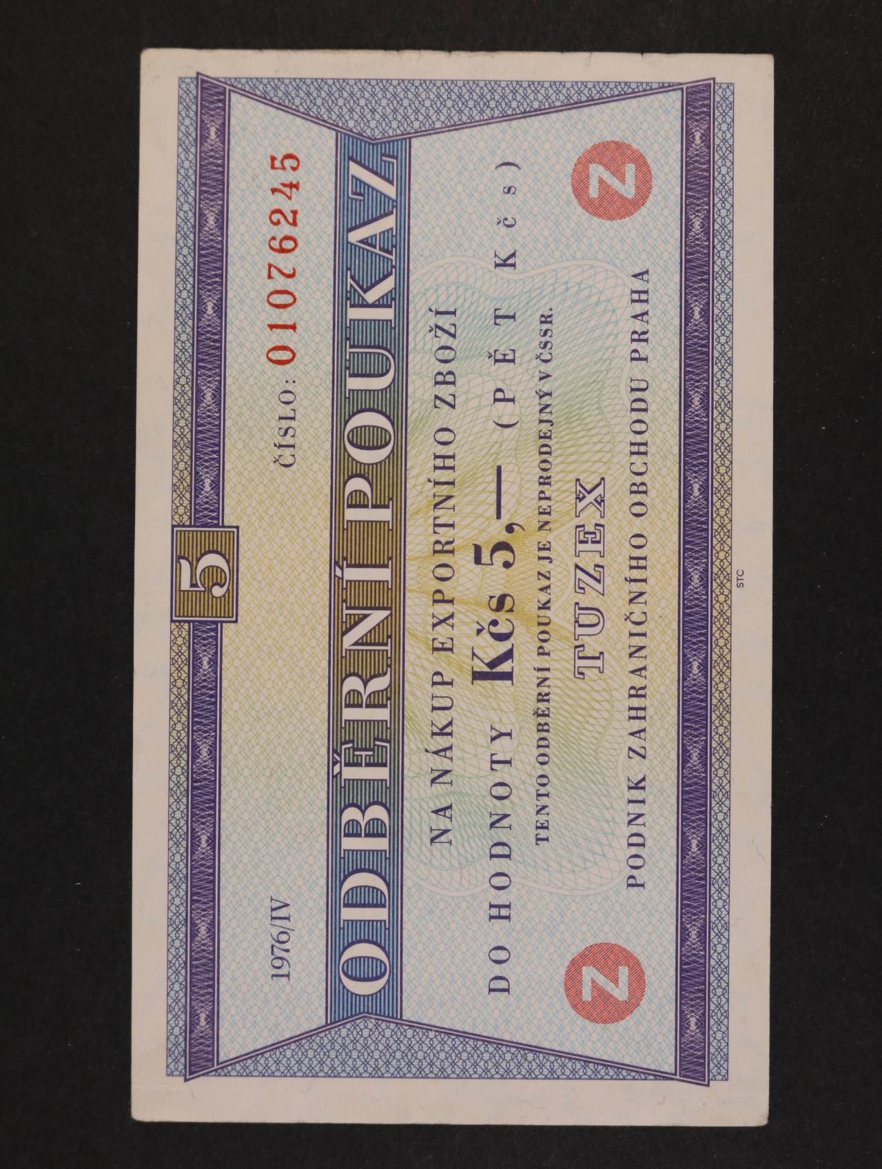 • Tuzex, 5 TKčs 1976/IV zahraniční, K.Š.K. 49/VII/b