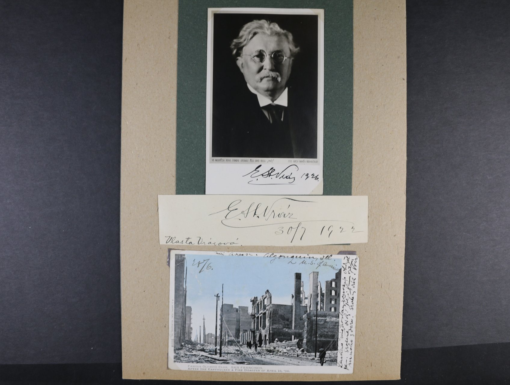 • Vráz Enrigue Stanko 1860 - 1932, cestovatel - sestava 3 pohlednic, dopisu a výstřižku s vlastnoručním podpisem