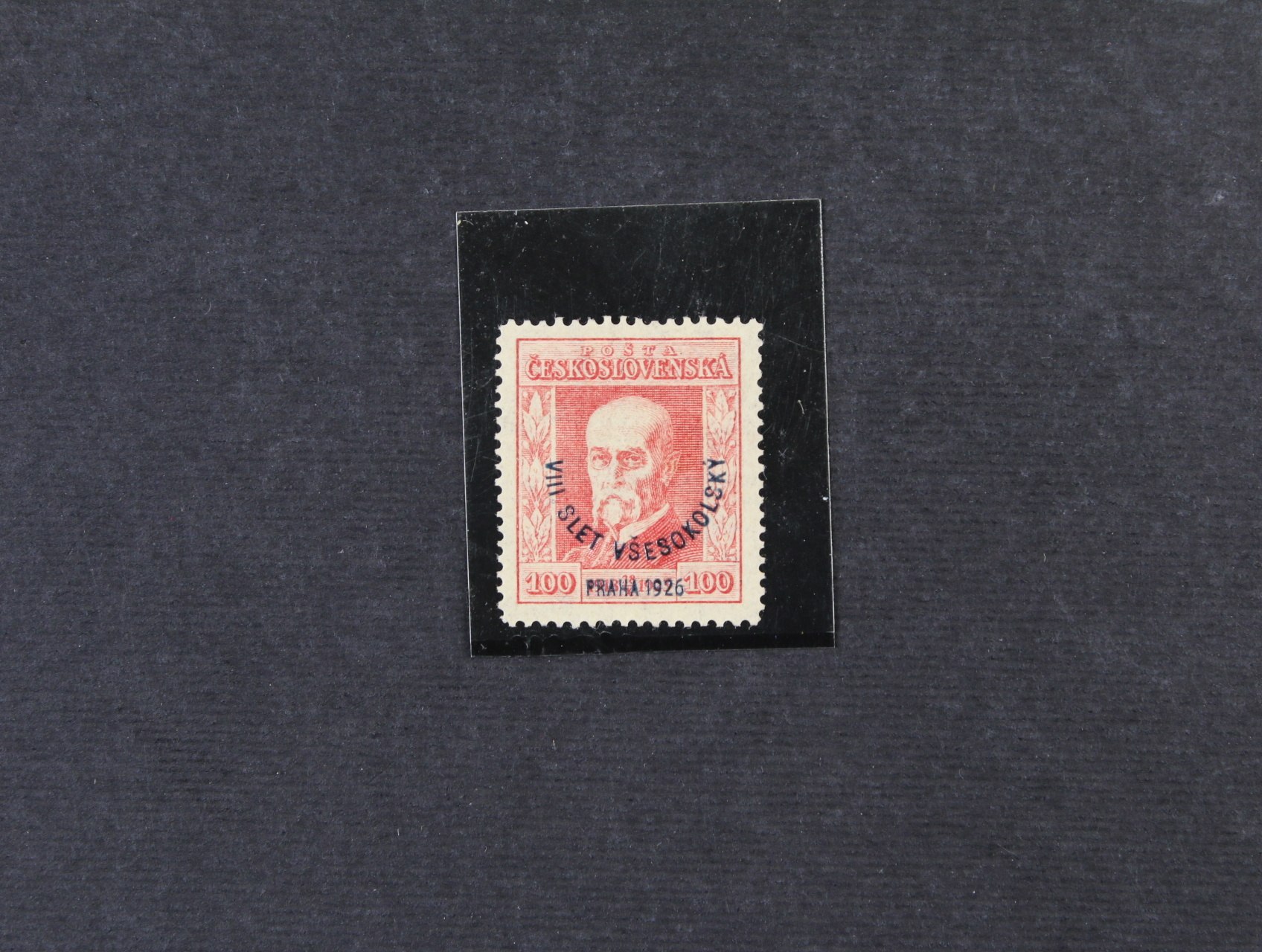 zn. č. 184 VIII. SLET VŠESOKOLSKÝ 1926 s převráceným a výrazně posunutým monogramem na lepu, kat. MERKUR 5000 Kč