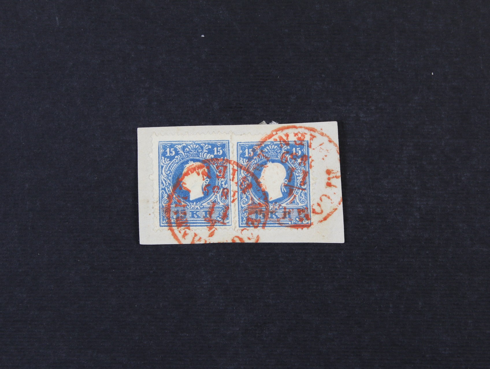 • zn. Fe. č. 15 II - dvě zn. na výstřižku s červeným raz. RECOMMANDIERT WIEN 4.11.1859