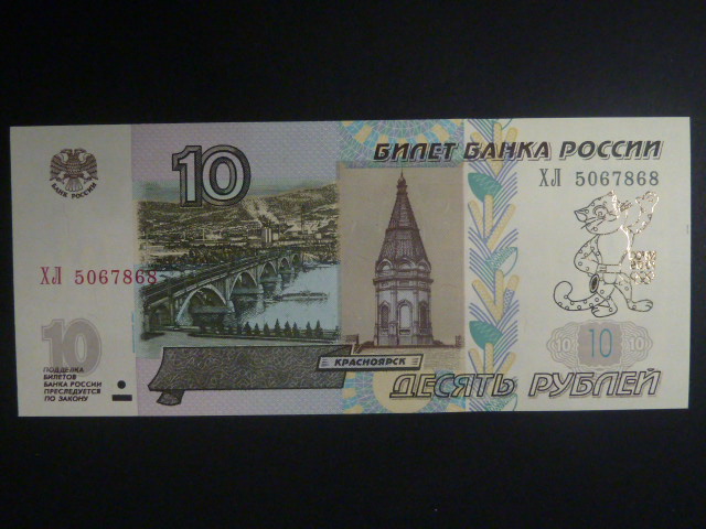 10 Rubles 2014 pamětní SOCHI olympiáda - zlatý přítisk tygřice