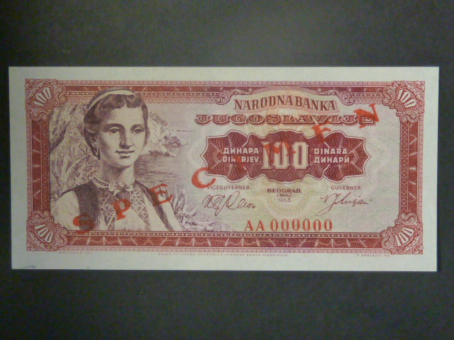 100 Dinara 1963 SPECIMEN, BNB. B401as, Pi. 73