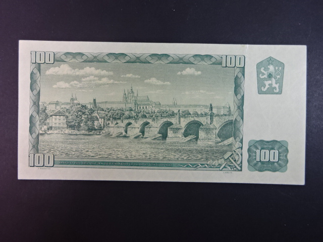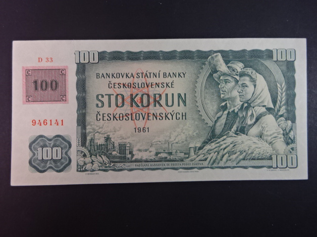 100 Kč 1961/1993 série D 33, kolek, natrž. v horním okraji 1 cm