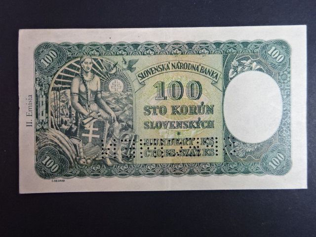 100 Ks 1940 II.vydání, série J 4, 1x perf. SPECIMEN dole