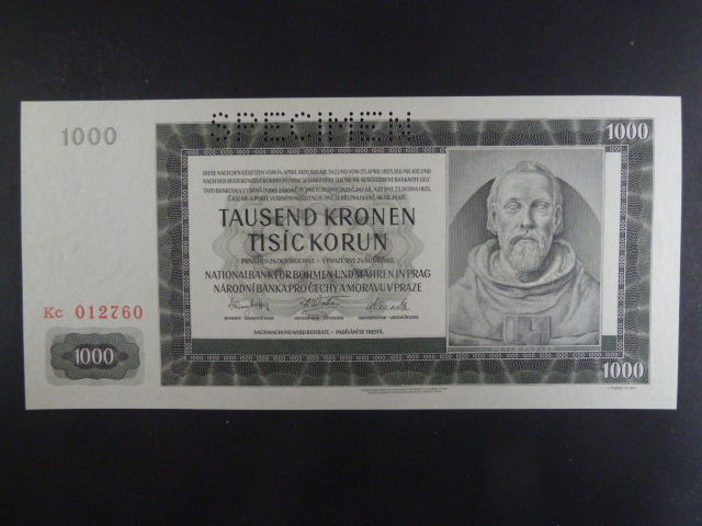 1000 K 1942 série Kc, III. vydání, perf. SPECIMEN