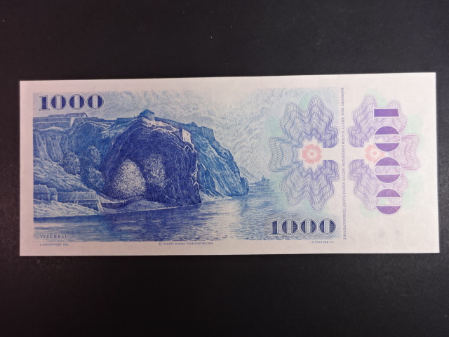1000 Kč 1985/1993 série U 15 I.deska, kolek tištěný