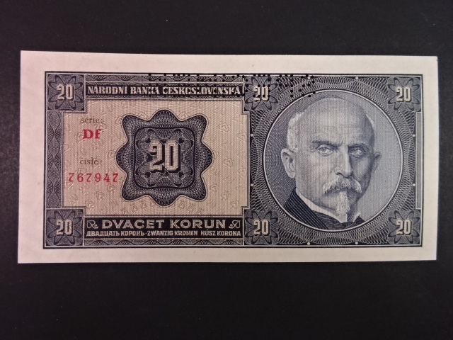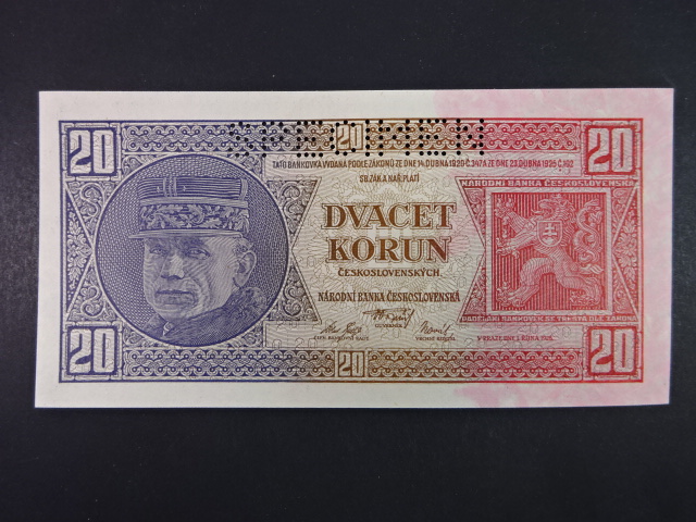 20 Kč 1926 série Df, perf. SPECIMEN z líce