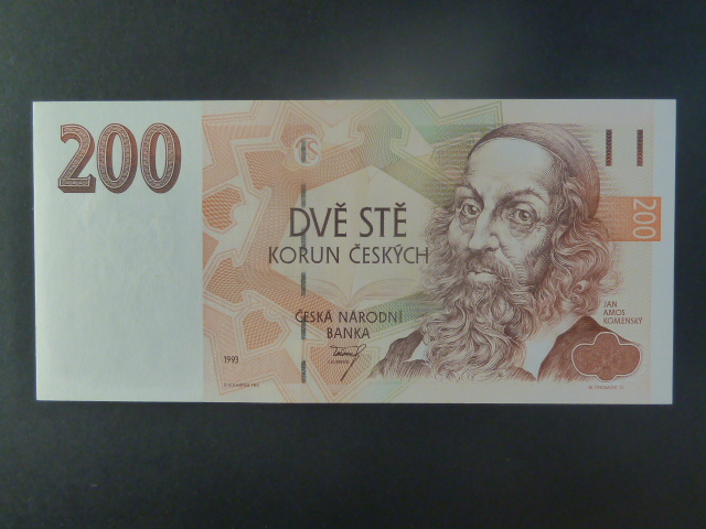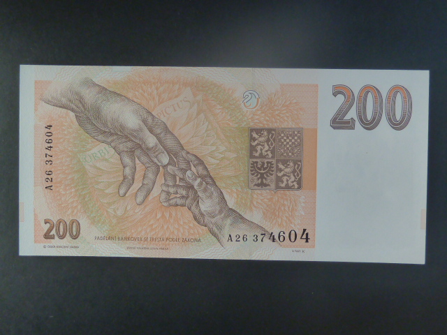 200 Kč 1993 série A 26 proužek Kčs, bílý papír
