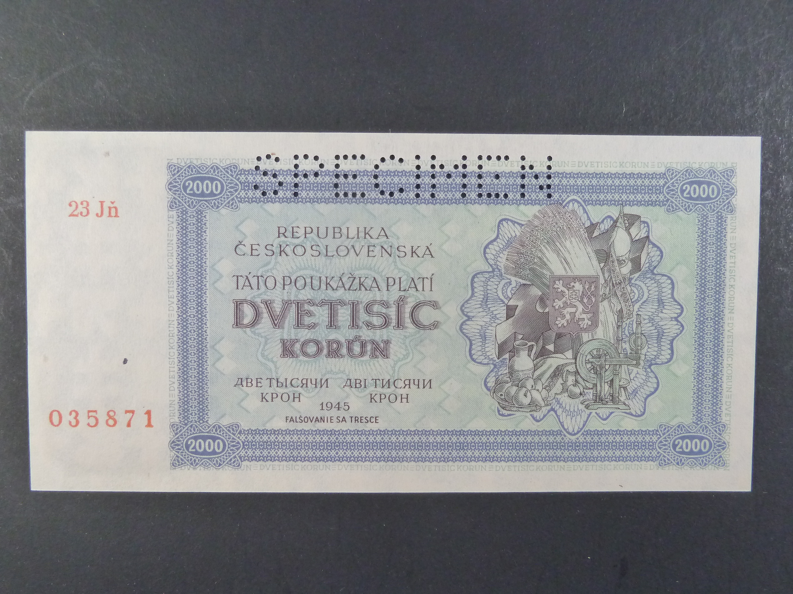 2000 K 1945 série 23Jň, perf. SPECIMEN nahoře, poloha vodoznaku A
