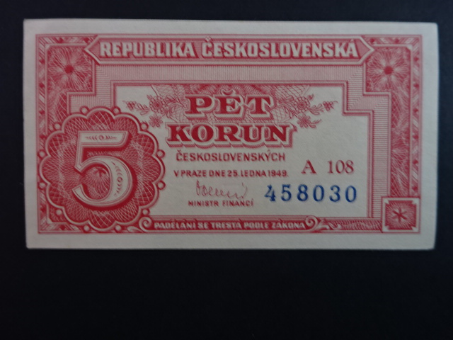 5 Kčs 25.1.1949 série A 113 (NO21439)