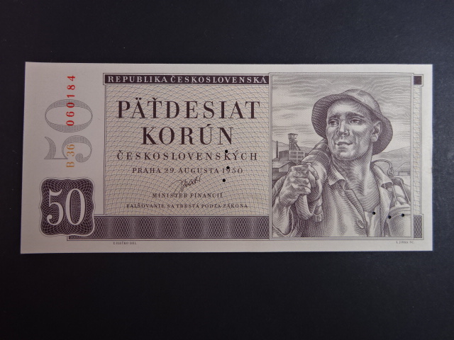 50 Kčs 1950 série B 36, 2x perf. "3md" do obloučku