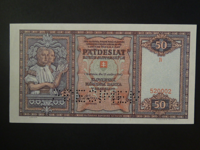 50 Ks 1940 série Ji, perf. SPECIMEN dole
