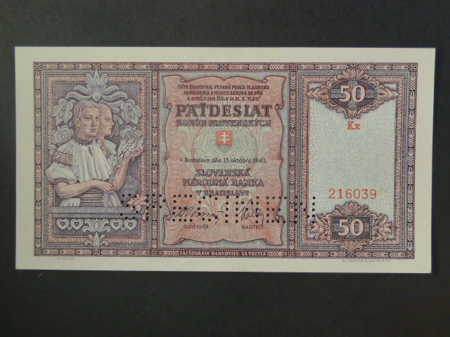50 Ks 1940 série Kx, perf. SPECIMEN dole