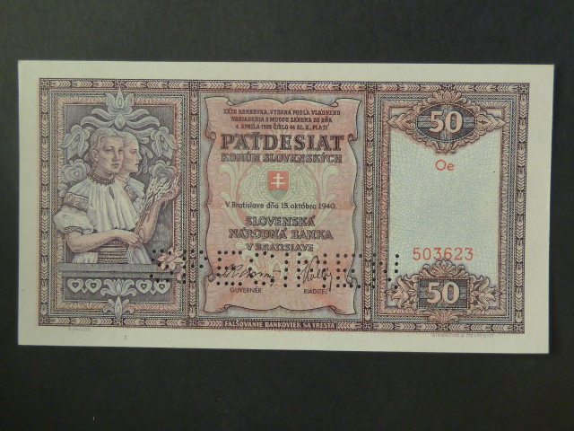 50 Ks 1940 série Oe, perf. SPECIMEN dole