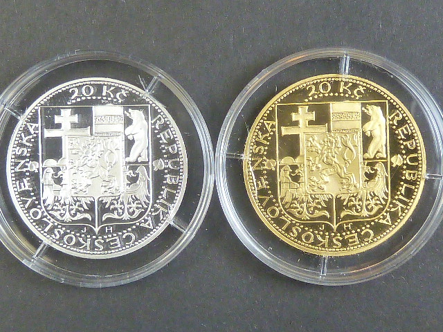 Au (0.986, 21g)+ Ag replika 20 Kč 1937, náklad 6 ks, certifikát, dřevěné etue