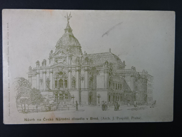Brno - Malinovského nám. (Theaterplatz) návrh na Zemské divadlo, neprošlá