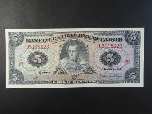 EKVÁDOR, 5 Sucres 1966, Pi. 100c