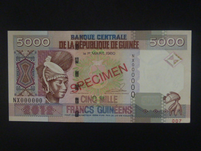 GUINEA, 5000 Francs 2012 SPECIMEN, BNB. B330bs