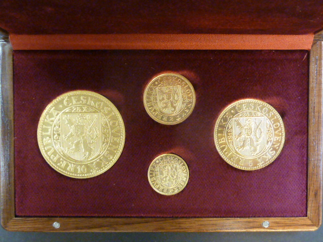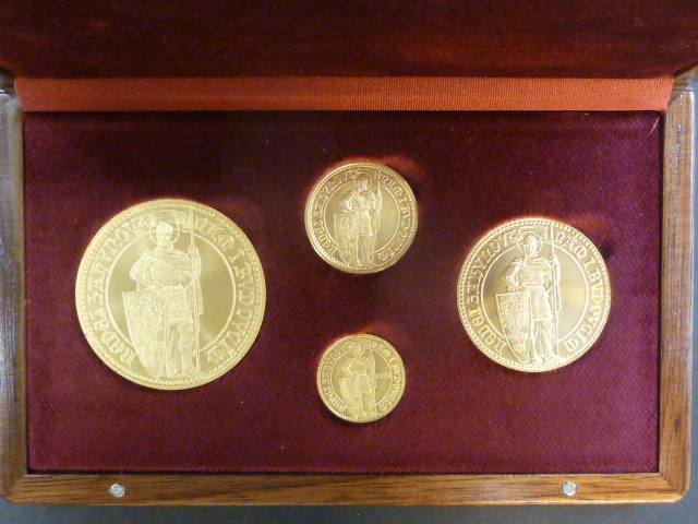 Jubilejní Svatováclavské dukáty 1 + 2+ 5 + 10 Dukát prvoražby z návrhů Jana Čejky z r. 1923 sv. Václav stojící, Au 986, 62,83g, náklad 100 ks číslovaných, č. 31, společná etue, certifikáty