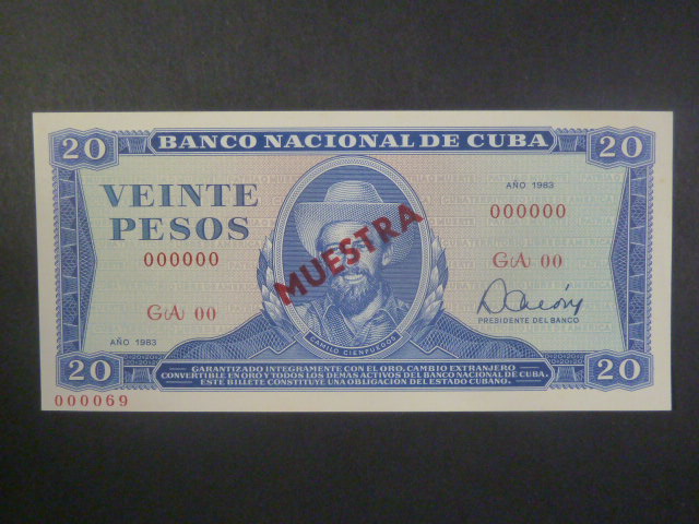 KUBA, 20 Pesos 1983 specimen MUESTRA, BNB. B827cs, Pi. 94