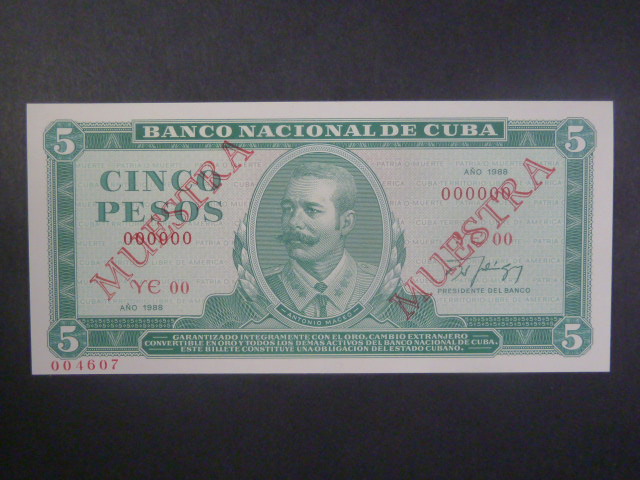 KUBA, 5 Pesos 1988 specimen MUESTRA, BNB. B825is, Pi. 92