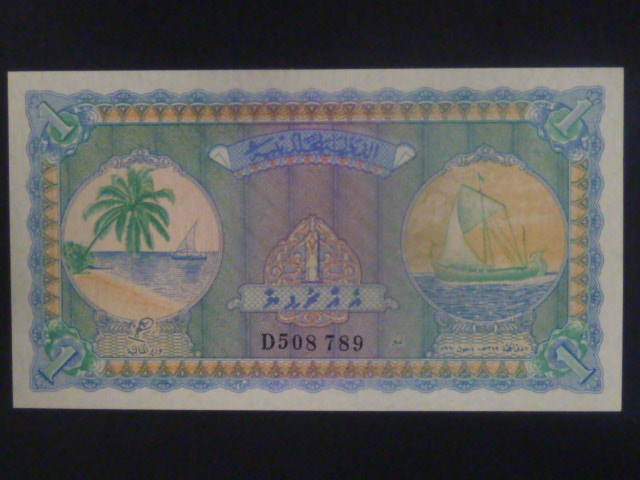 MALEDIVY, 1 Rufiyaa 1960 série D, BNB. B102b, Pi. 2
