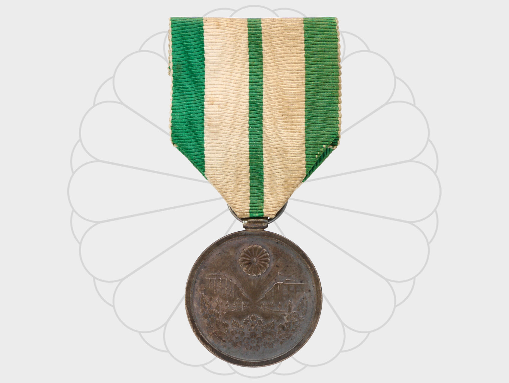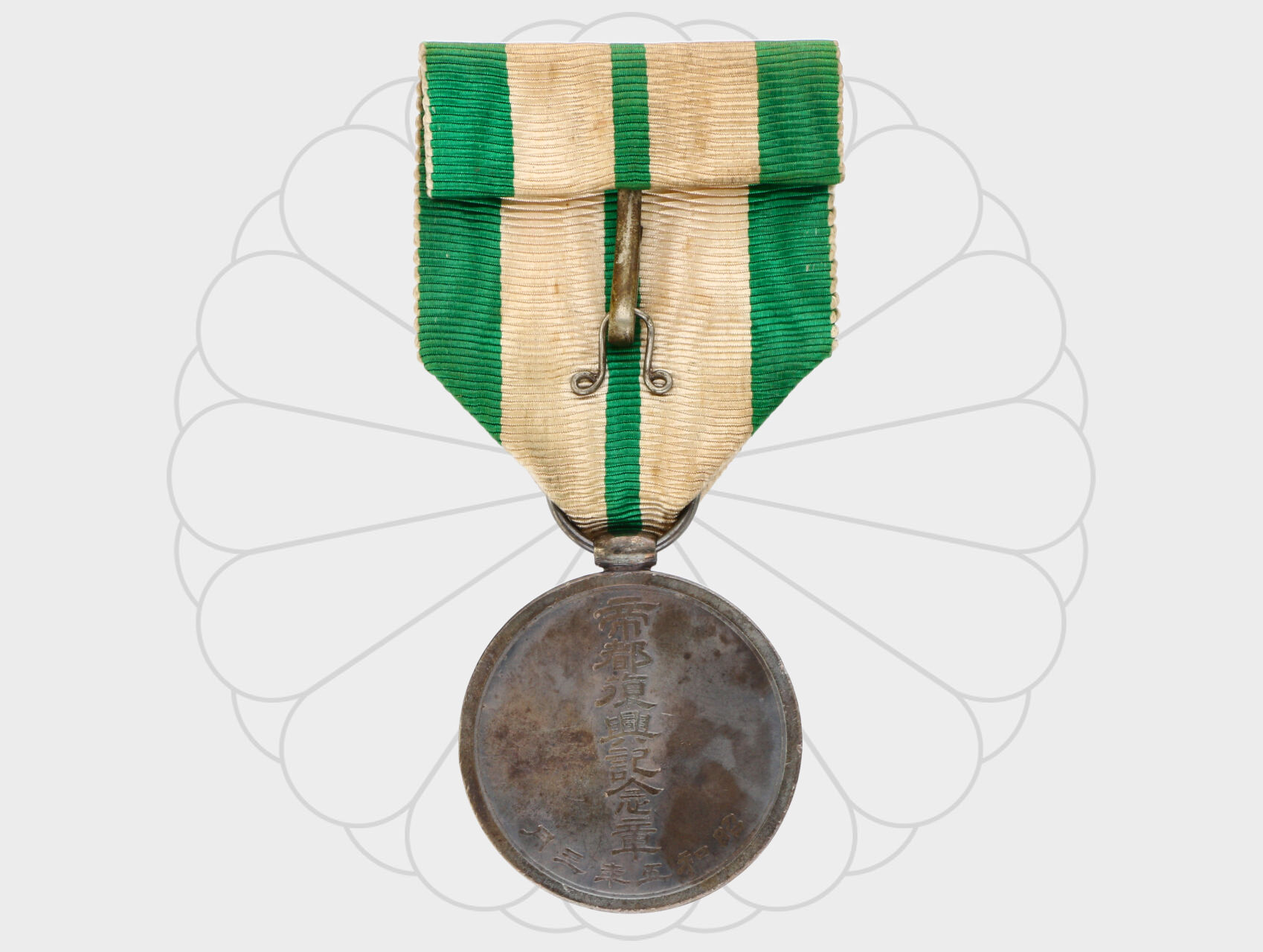 Medaile na rekonstrukci hlavního města Tokio, patinované stříbro, původní stuha..