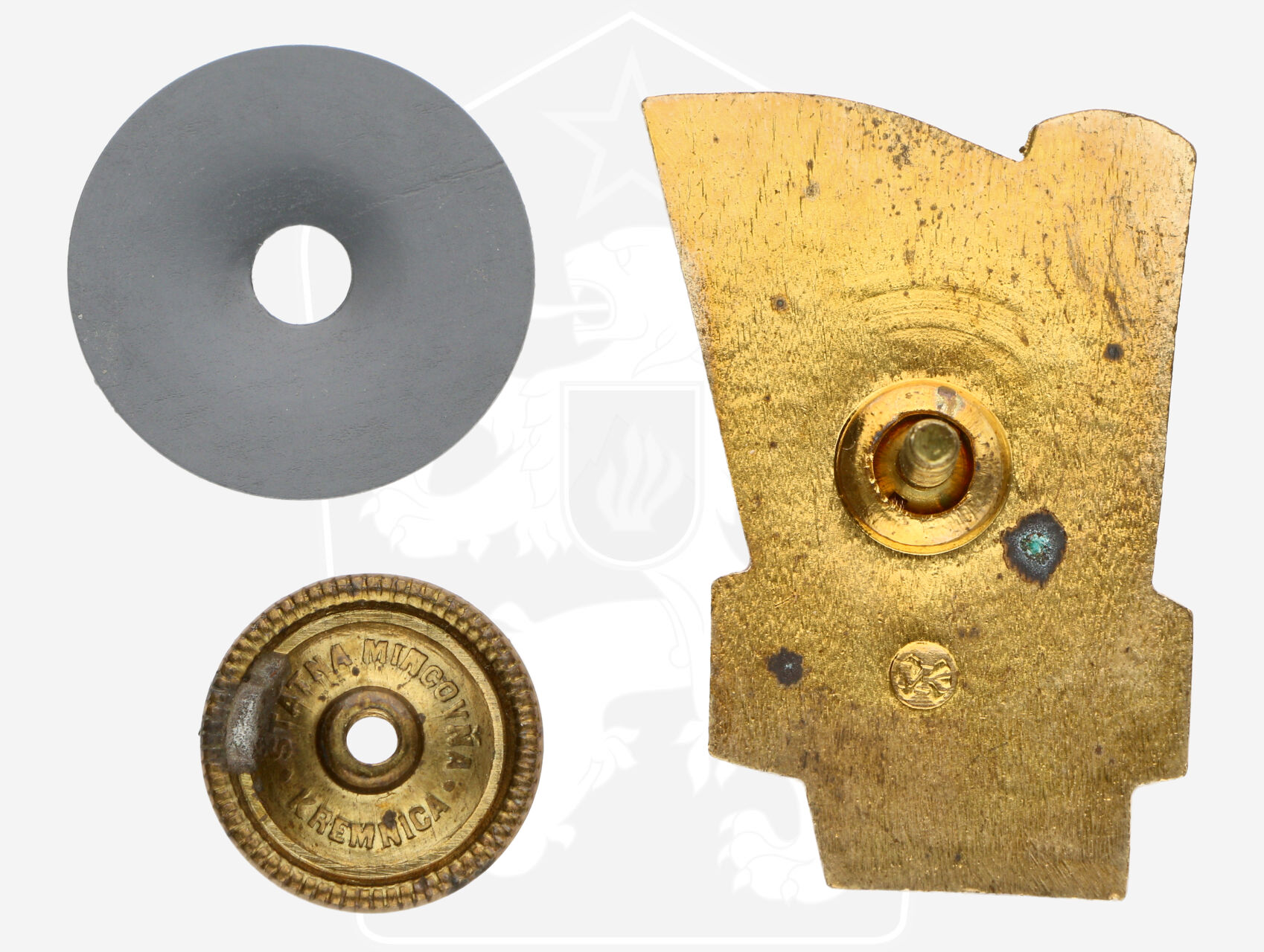 Odznak vojenský zlepšovatel, větší typ, na reversu značka výrobce MK (mincovna Kremnica), upínání na šroub