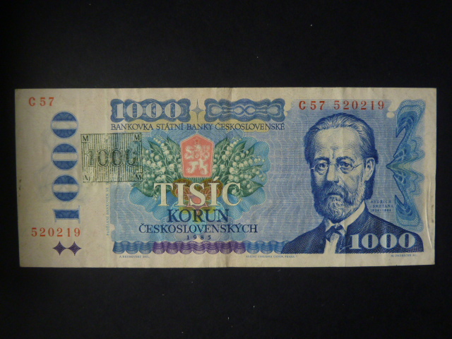 padělek, 1000 Kč 1985/1993 série C 57, kolek tištěný - dobový padělek