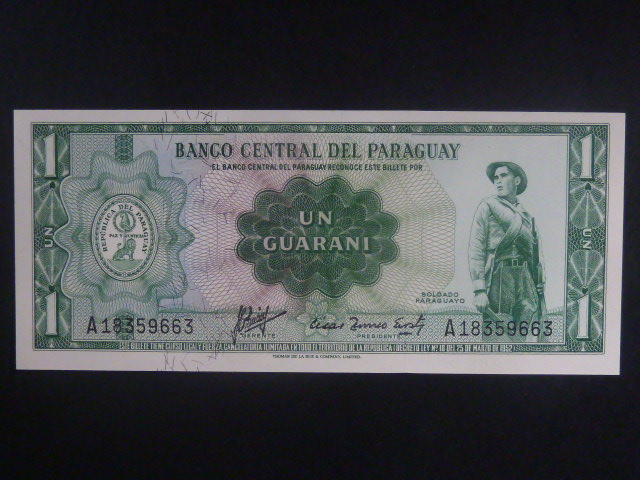 PARAGUAY, 1 Guarani 1952 varianta podpisu 2, BNB. B808b, Pi. 192a