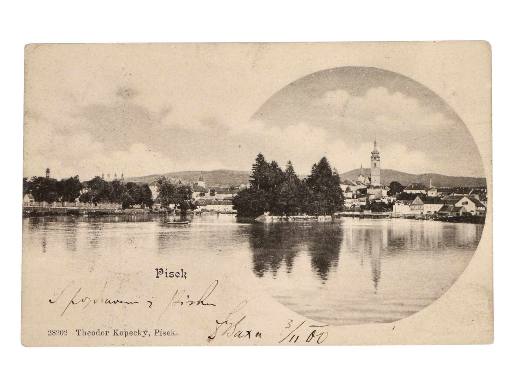 Písek - jednobar. litografie, dl. adresa, použitá 1900