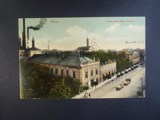 Přerov Komenského tř. pivovar, prošlá 1908