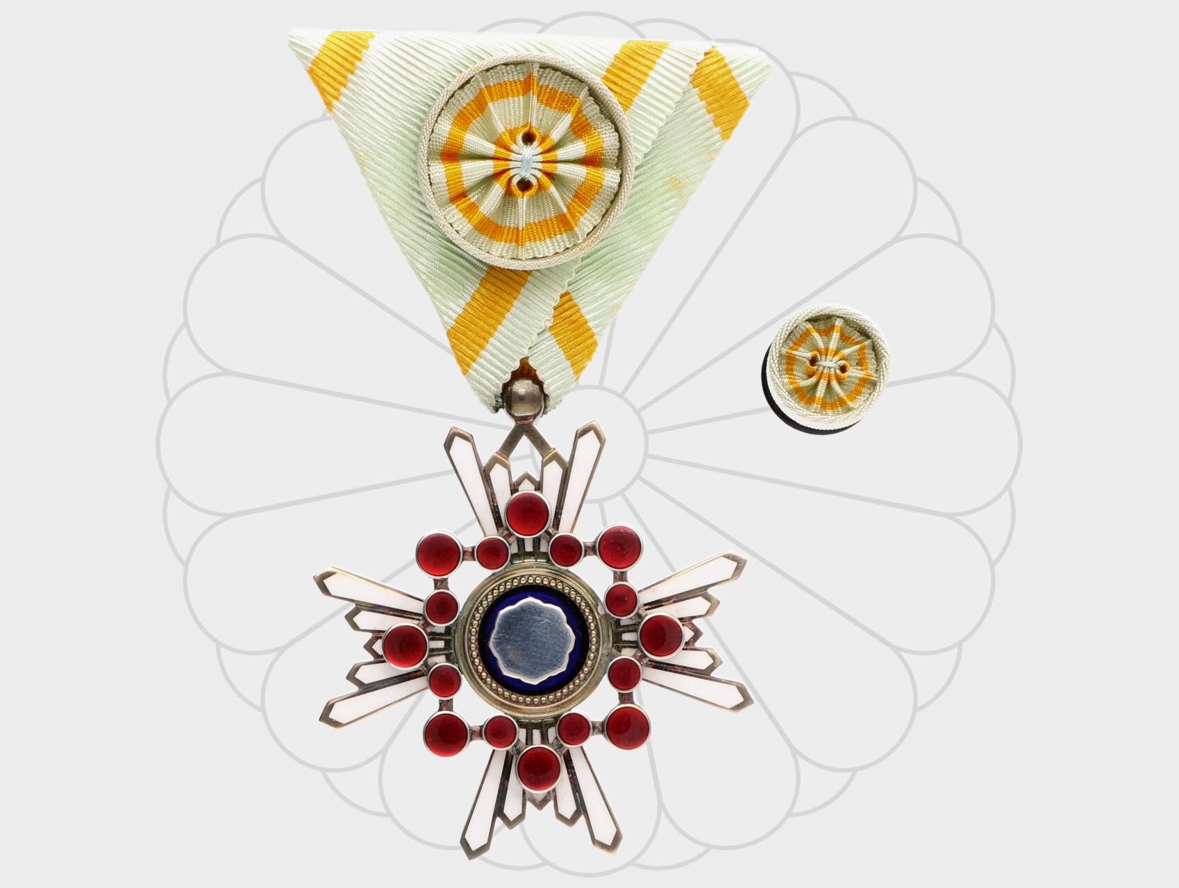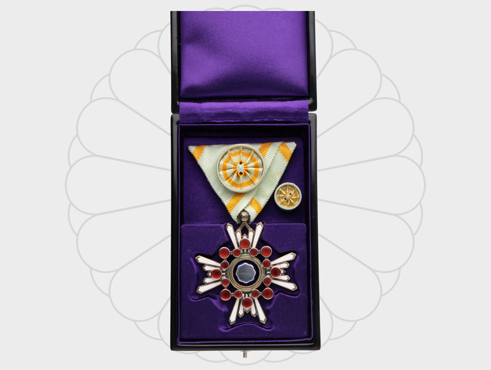 Řád posvátného Pokladu, IV. třída, stříbro, smalty, nepunc. a neznačeno, původní etue, poválečná výroba..