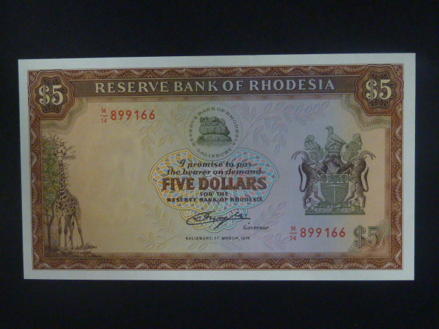 RHODESIE, 5 Dollars 1976, série M14, BNB. B109b, Pi. 32