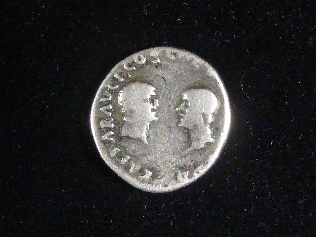 opis na minci: Av: IMP CAESAR - VESPASIANUS AVG Rev: TITUS poroti DOMITIAN