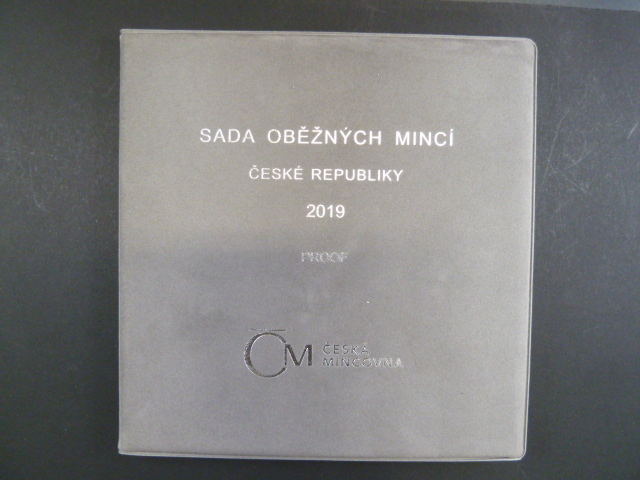 sada 2019 PROOF + Ag medaile Země koruny české, náklad 1700 ks, semišový obal