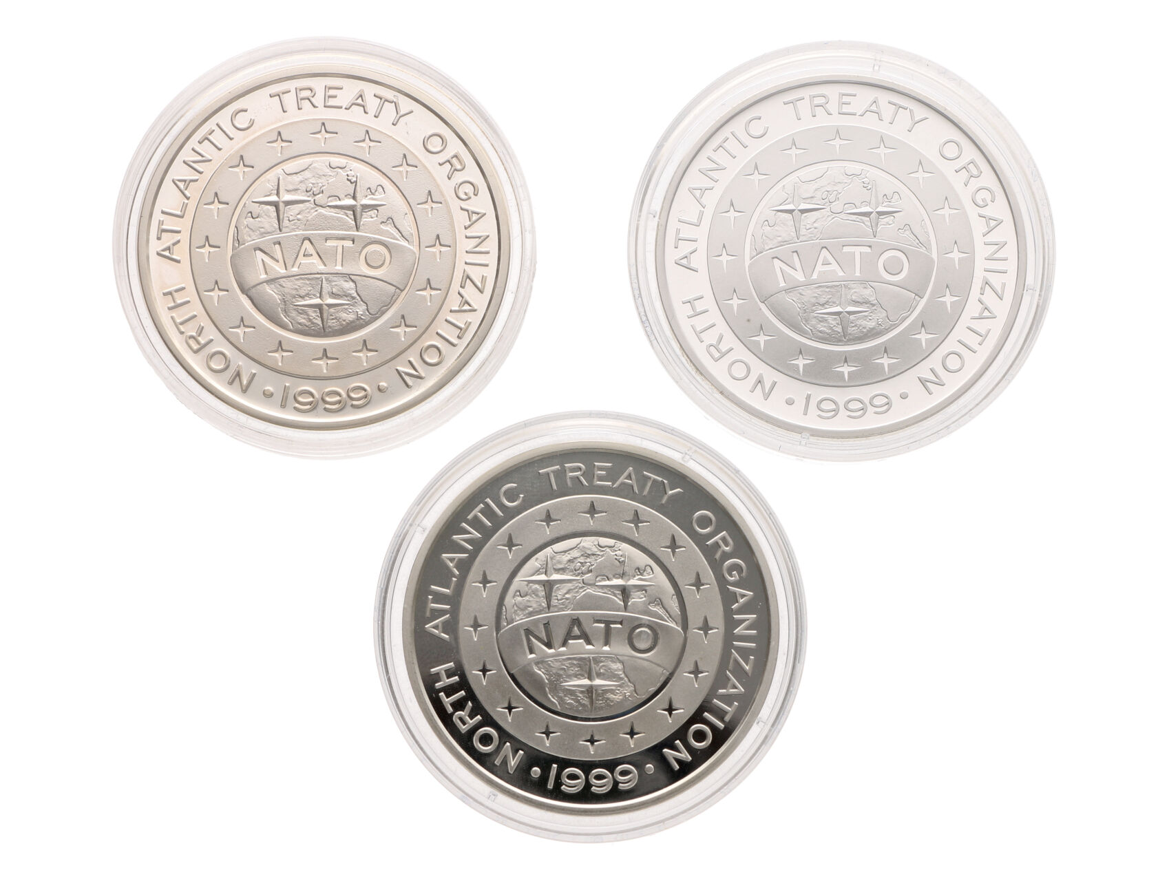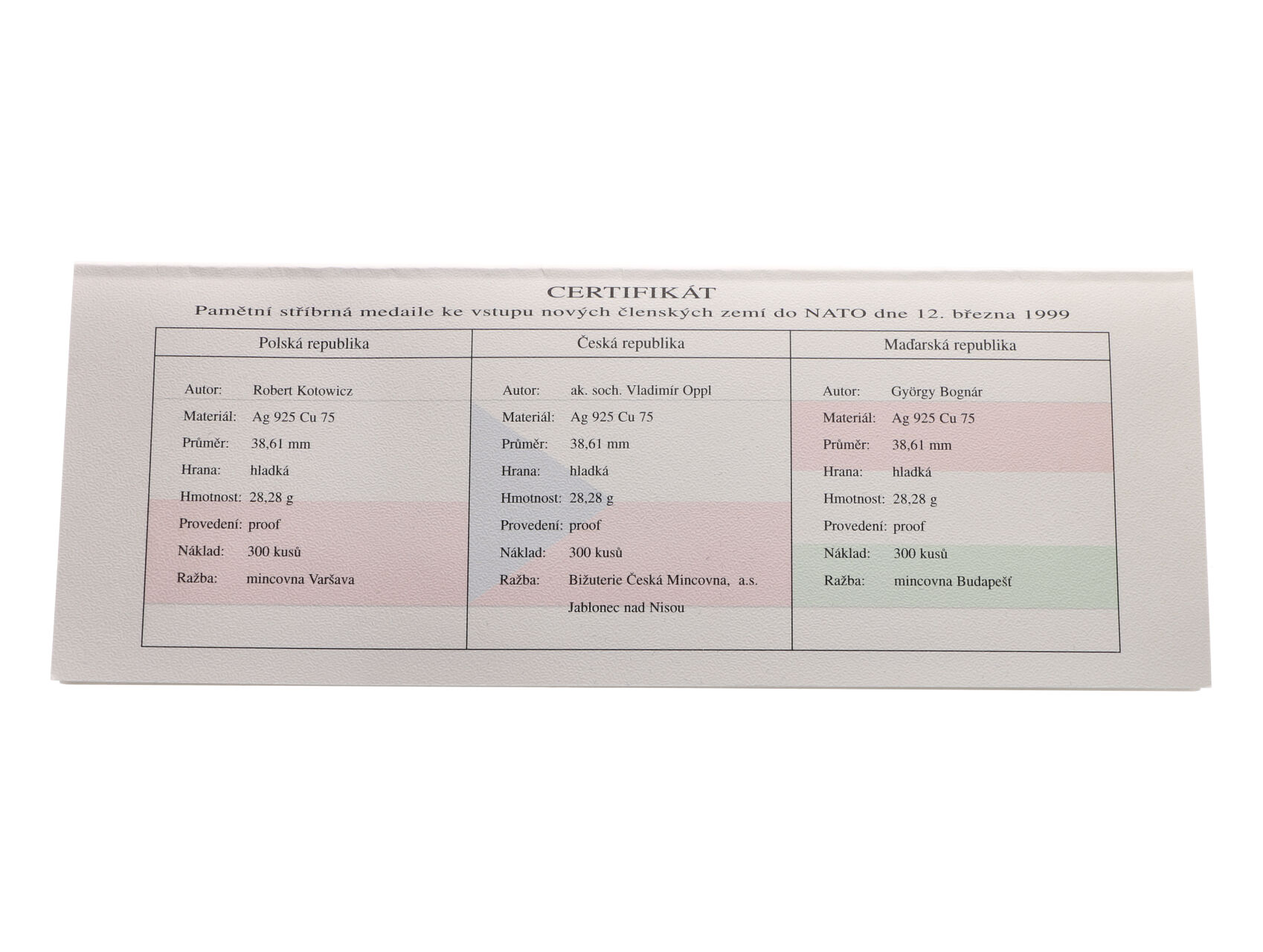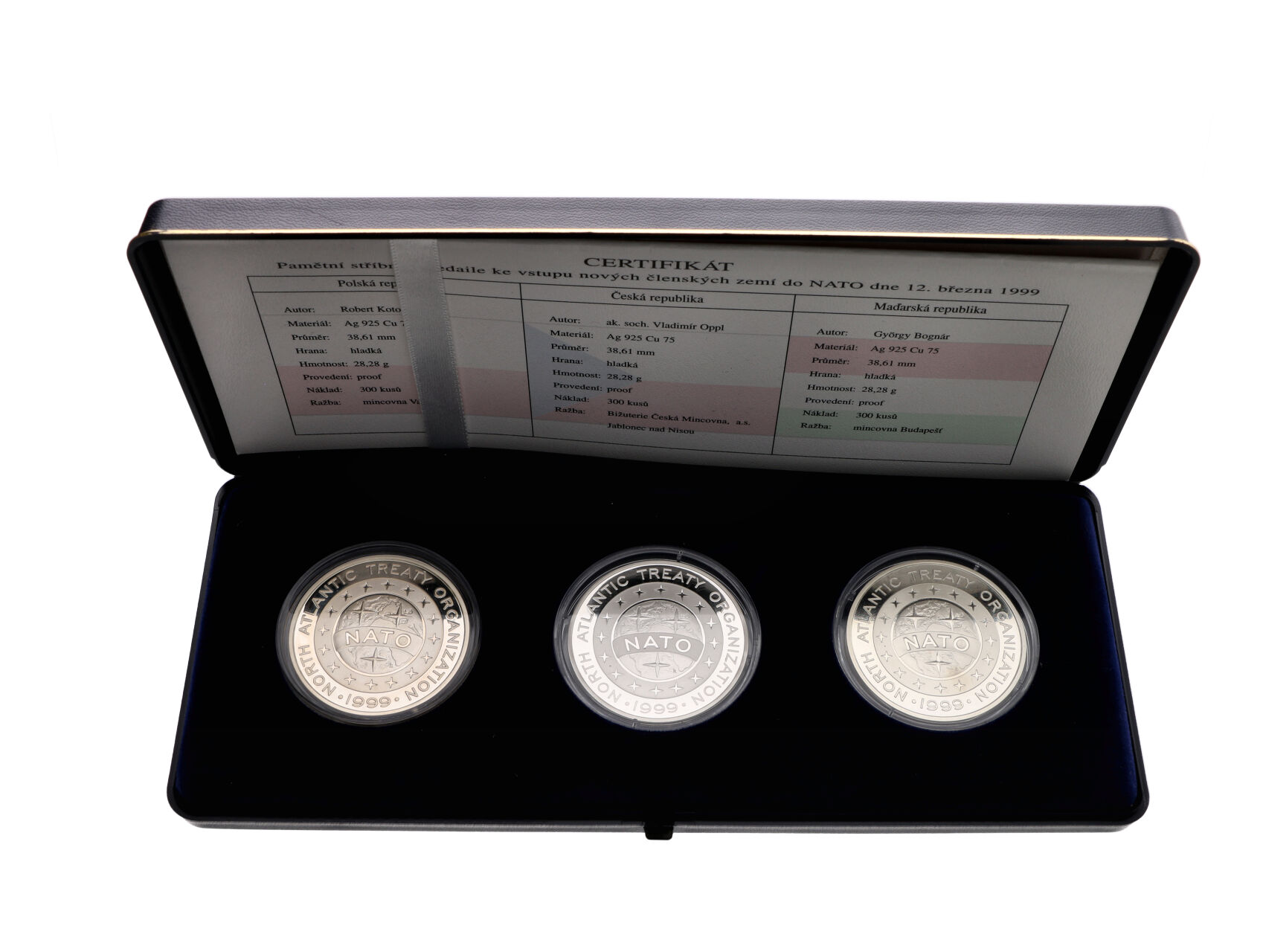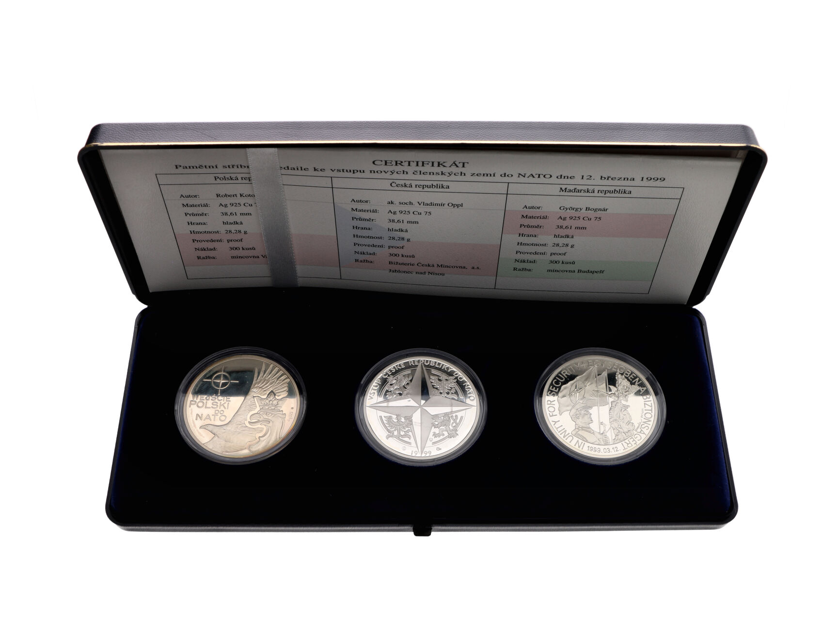 Sada 3 medailí - Vstup ČR, Polska a Maďarska do Nato 1999, společná etue a certifikát_