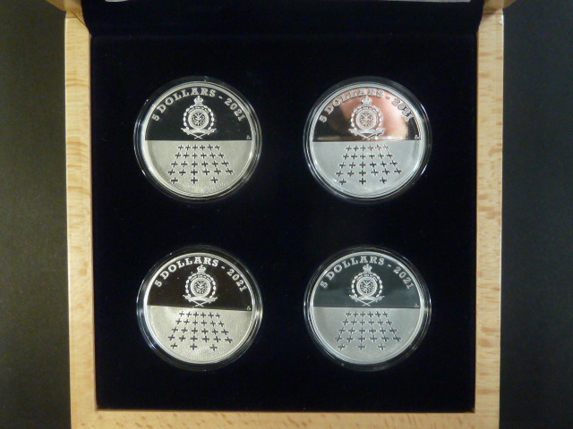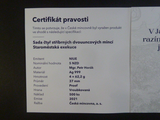 Sada 4 ks, 5 dollars 2021 s motivem Staroměstská exekuce, 4x 2 OZ, Ag 999, náklad 500 ks