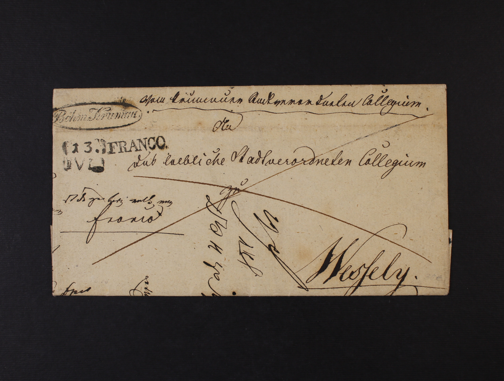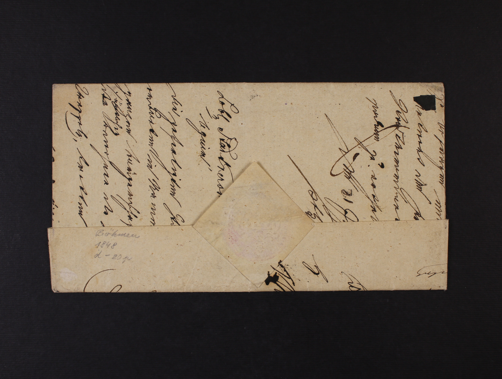 skl. dopis z r. 1848 s oválným pod. raz. Böhm Krummau + příd. řádk. raz. FRANCO a datumovka 13.5.