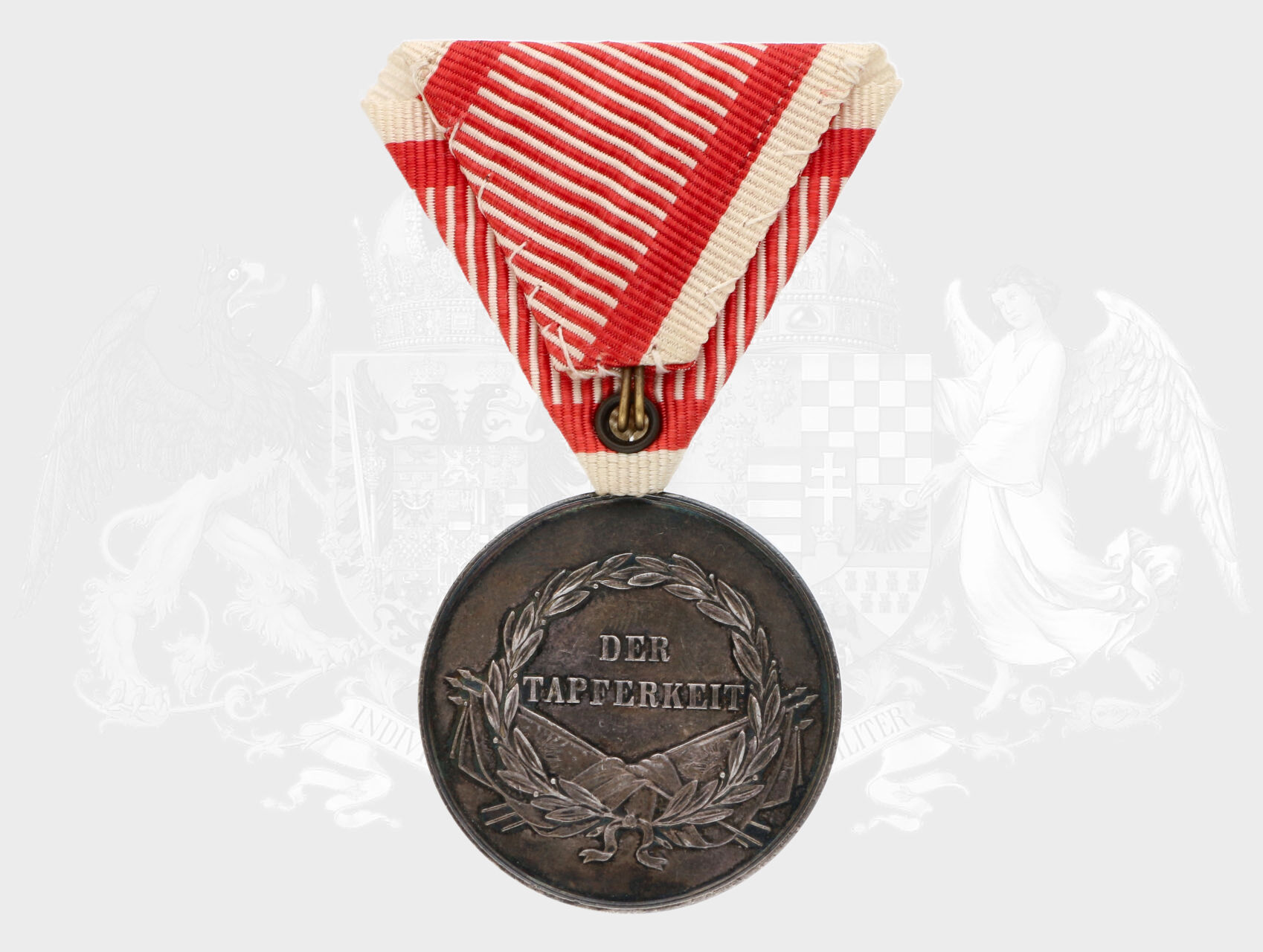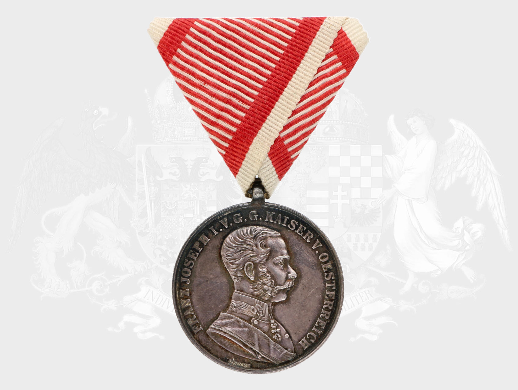 Stříbrná medaile za statečnost, 1. třídy, 8. vydání 1914-1917 F.J.I., na hraně punc hl. punc. úřadu Vídeň, A v kroužku, původní vojenská stuha