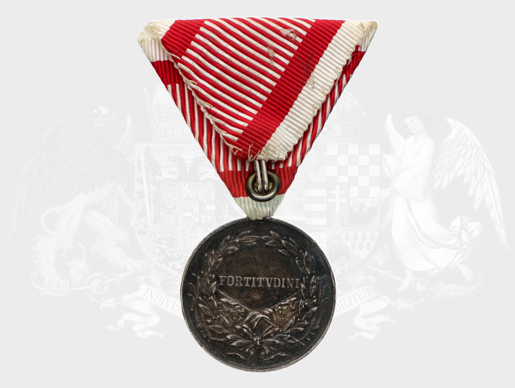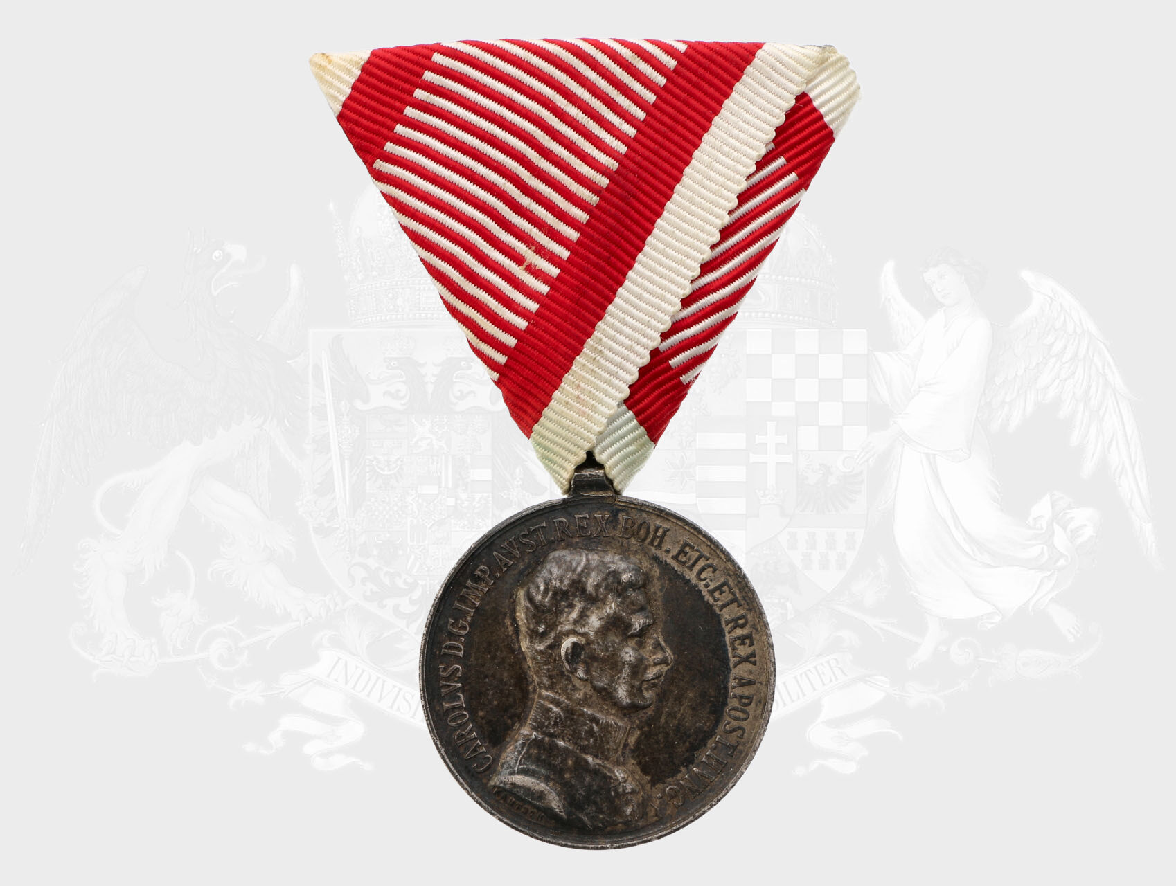 Stříbrná medaile za statečnost 2. třídy, 9. vydání 1917-1918 Karel, původní vojenská stuha