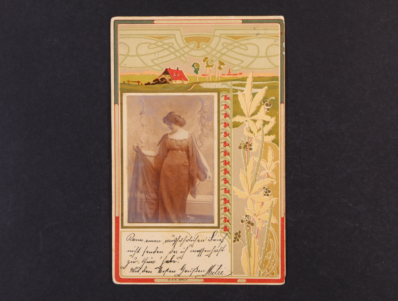 Umělecké - secesní bar. litograf. koláž W.S.- E. BERLIN, použitá 1901