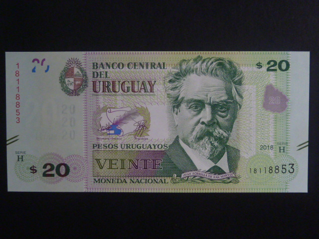 URUGUAY, 20 Pesos uruguayos 2018, BNB. B552b, Pi. 93