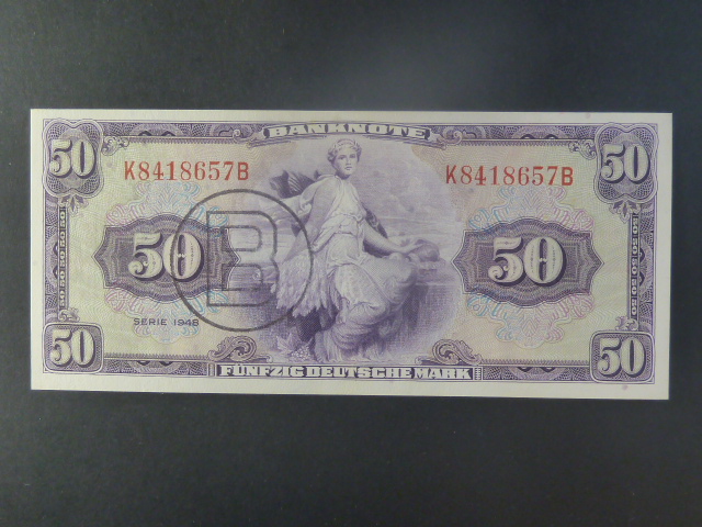 Vydání pro Berlín, 50 Deutsche Mark 1948 série K/B s přetiskem B, Ros. 243, Grab. WBZ-19a