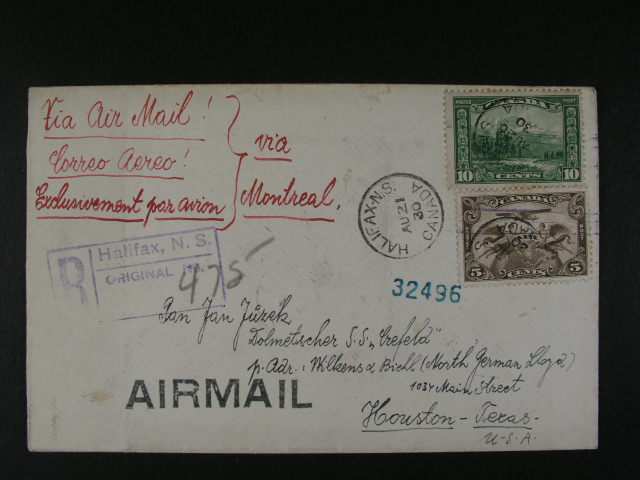 2091 let. dopis z Kuby do USA a R-let. dopis z Kanady do USA, oba v r. 1930, zajimave frankatury 300
