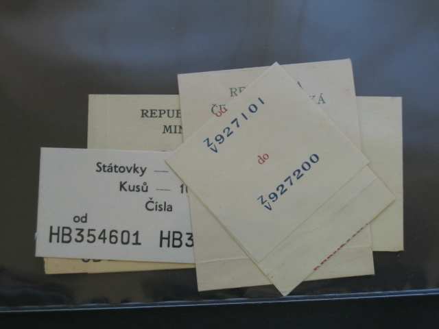 1036 5ks bankovních pásek od 5 Kčs - 100 Kčs 1945 londýnská emise s otisky orig. číslovačů, zajímavé 500