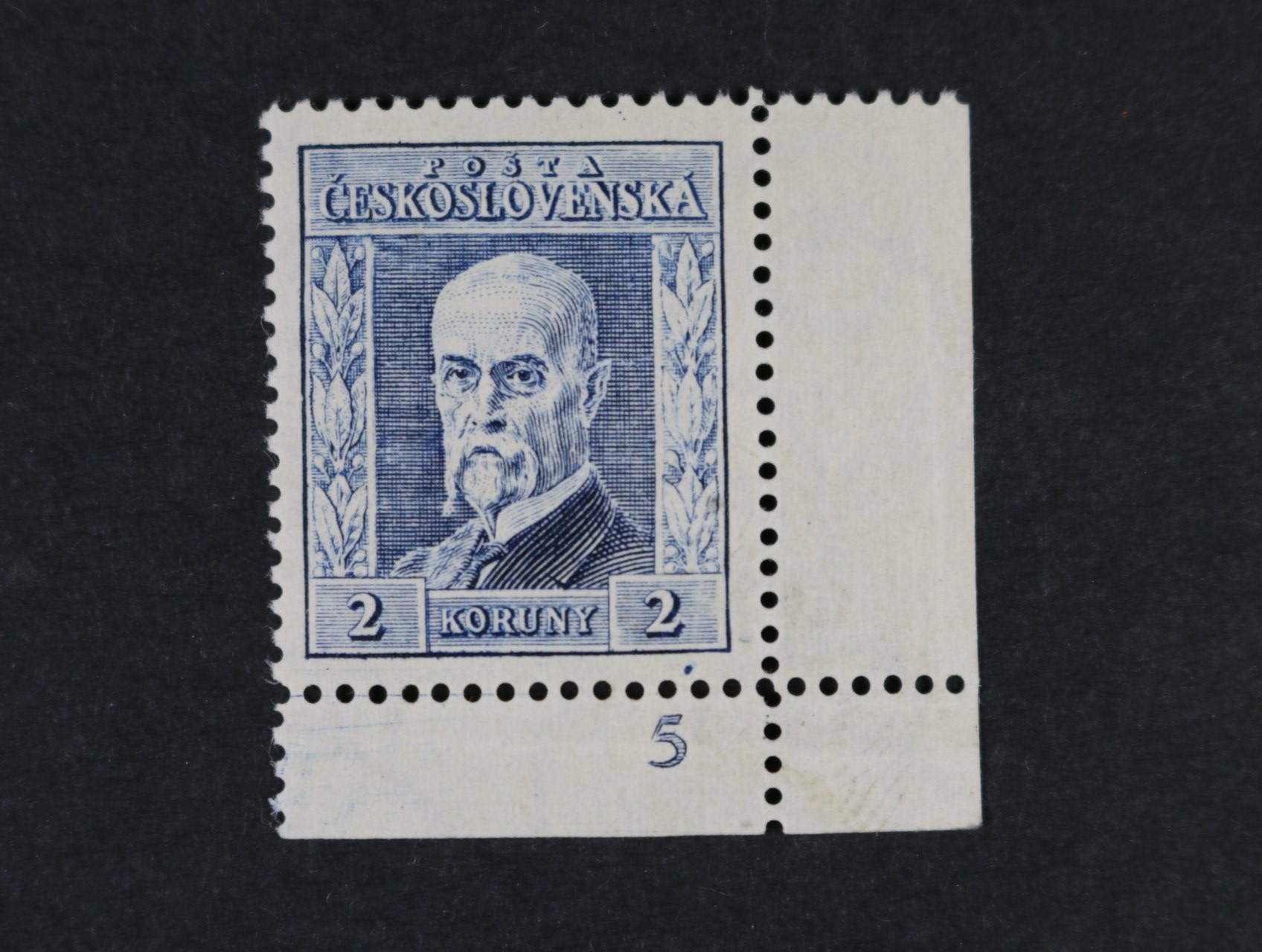 zn. č. 182 - pravý spodní roh. kus, pr. 5, DZ I, kat. cena 5500 Kč